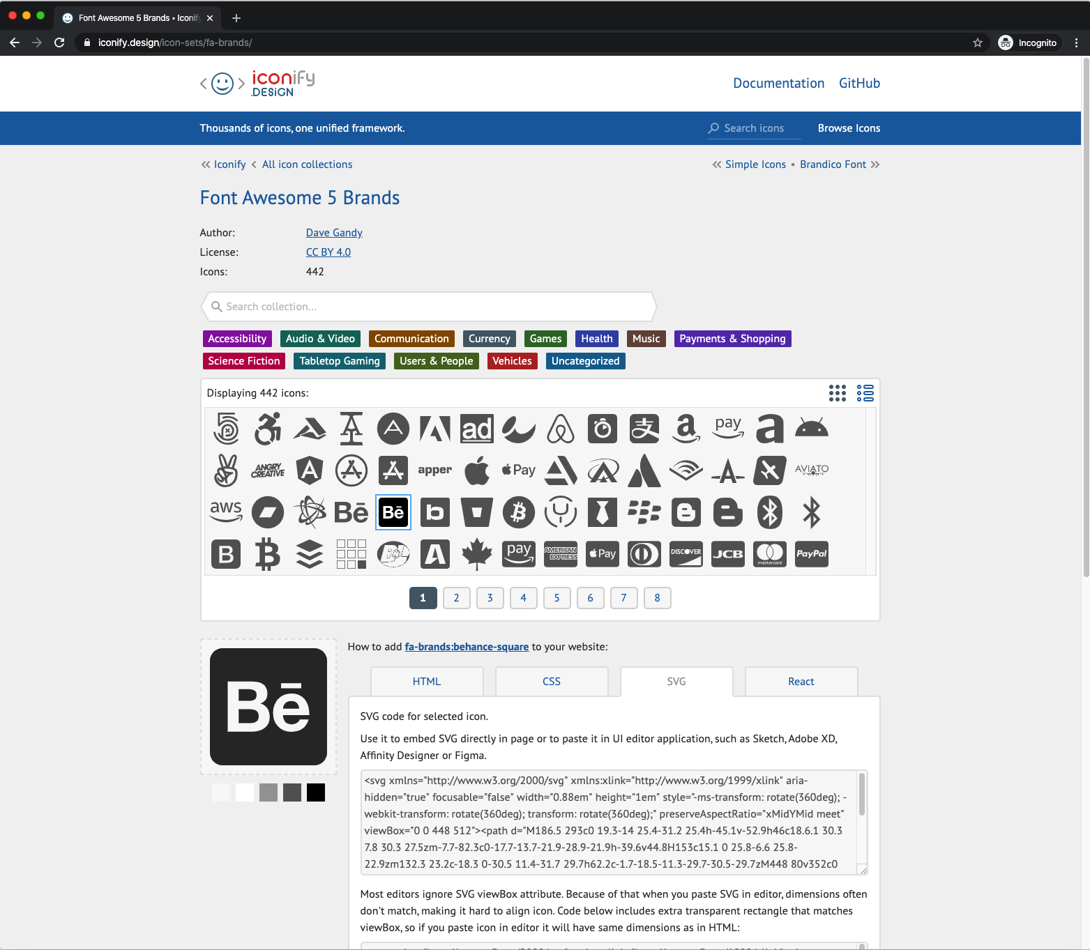 1. Go To the Iconify library, they have close to 20,000 SVG icons.
