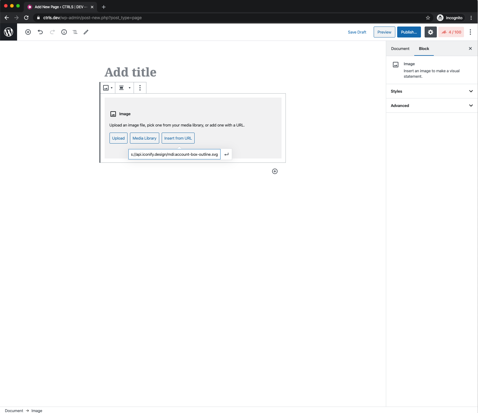 5. Use the Insert from URL button and paste the SVG URL we previously copied.