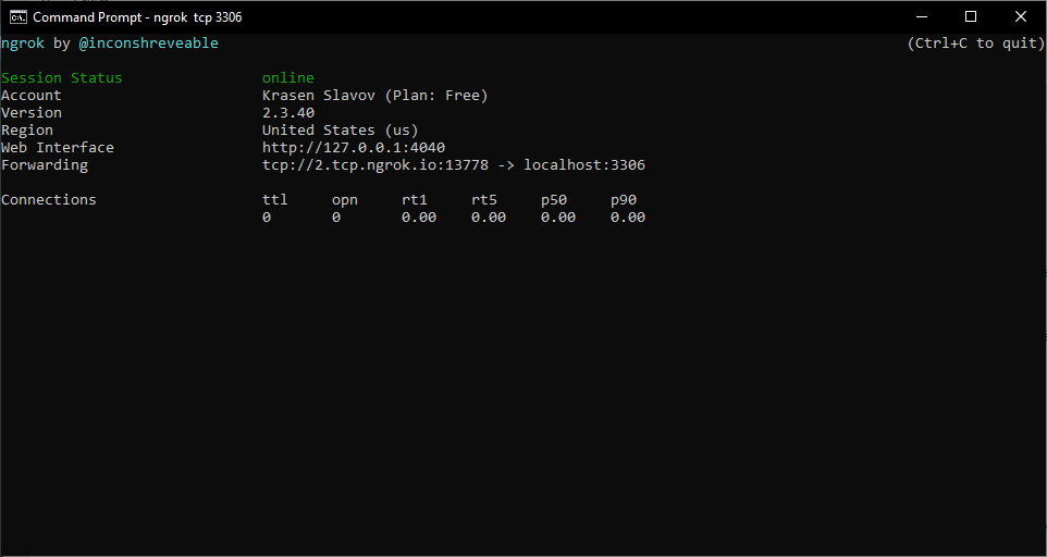 You can automate the above process, create shell script files, and register a paid ngrok account. This way, your tunnel URL and PORT will be the same for each sync.