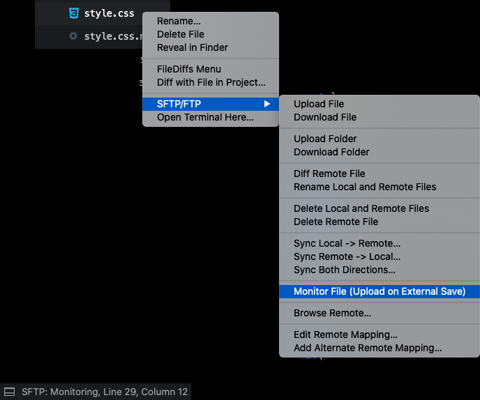See the screenshot below to apply this to your style.css file. All files with monitor will have the SFTP: Monitoring displaying in the bottom toolbar. In reality, you can monitor any dynamically generated file this way.