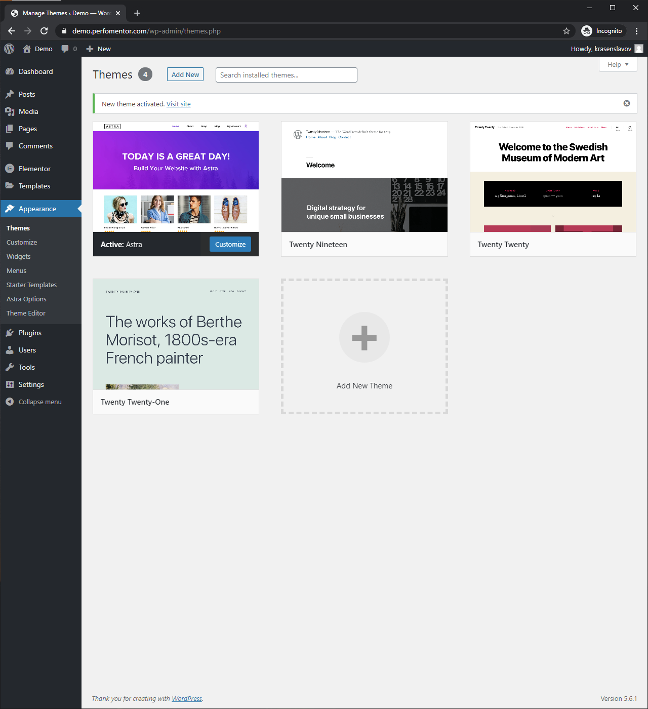 - Install Astra theme, Elementor, and Starter Templates plugins. Set Astra as our primary theme (you may want it as an additional step to create a child theme).