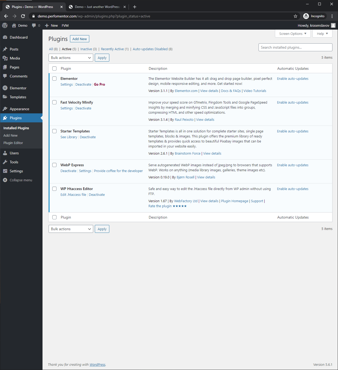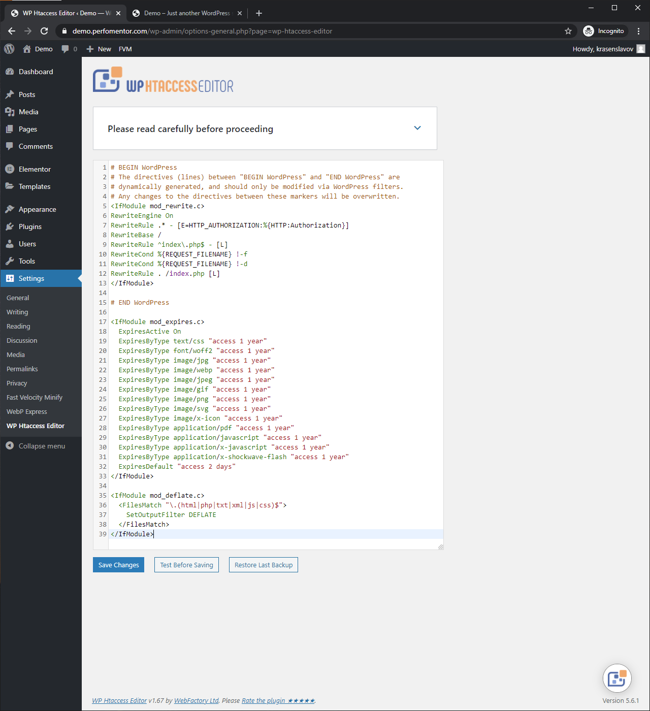 To improve the performance of our website, we are going to use three additional plugins, one of which will be used only to edit our .htaccess file and can be deleted after that.