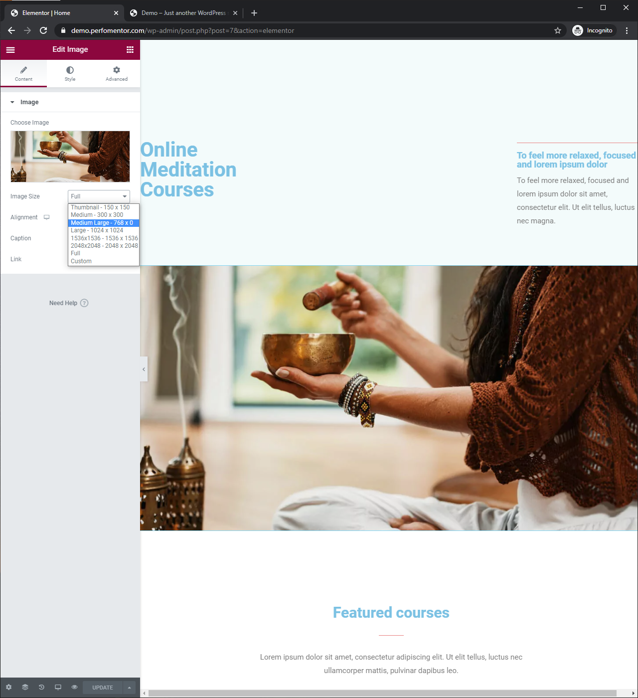 - Open the page in Elementor. Add and update the proper image and background sizes for mobile view (Don’t ever use full-size images as backgrounds).