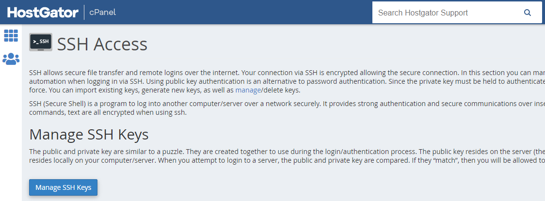 First, we need to generate our SSH keys on your server. To do that on Hostgator, you need to follow the three steps below: