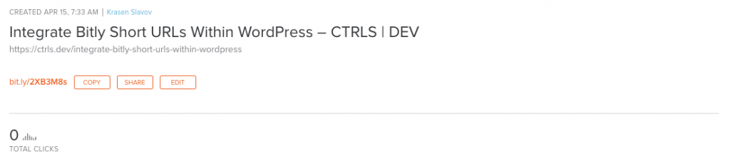 Once we do this, when we call the wp_get_shortlink($post_id), we won’t get the plain WordPress permalink but the new Bitly short URL.