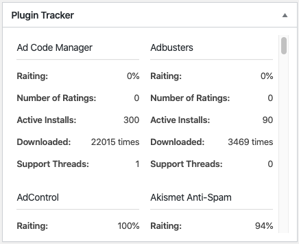 Next, we have a plugin_tracker() function that will handle the actual data gathering from the WordPress plugin API and then display the HTML with formatted data for each plugin from the query.